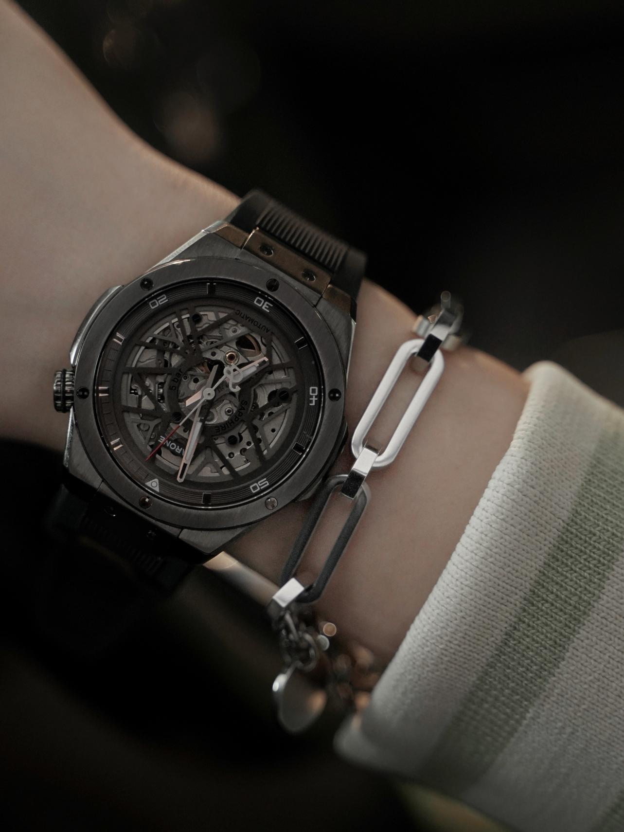 經典的RARONE雷諾表雙子星腕表,結合當下流行的解構元素,用來點綴整體穿搭上,可以讓造型變得沒那么沉悶,既可以休閑又可以正式,不規則幾何線條切割鏤空表盤,不僅富有設計感個性十足,更增強表盤的立體層次感,雙面鏤空設計搭配對稱的“Y”,蘊含機械手表運動的美感,機械魅力盡在腕間掌握。進口機械機心,精鋼原色表殼,走時精準又凸顯腕表品質。