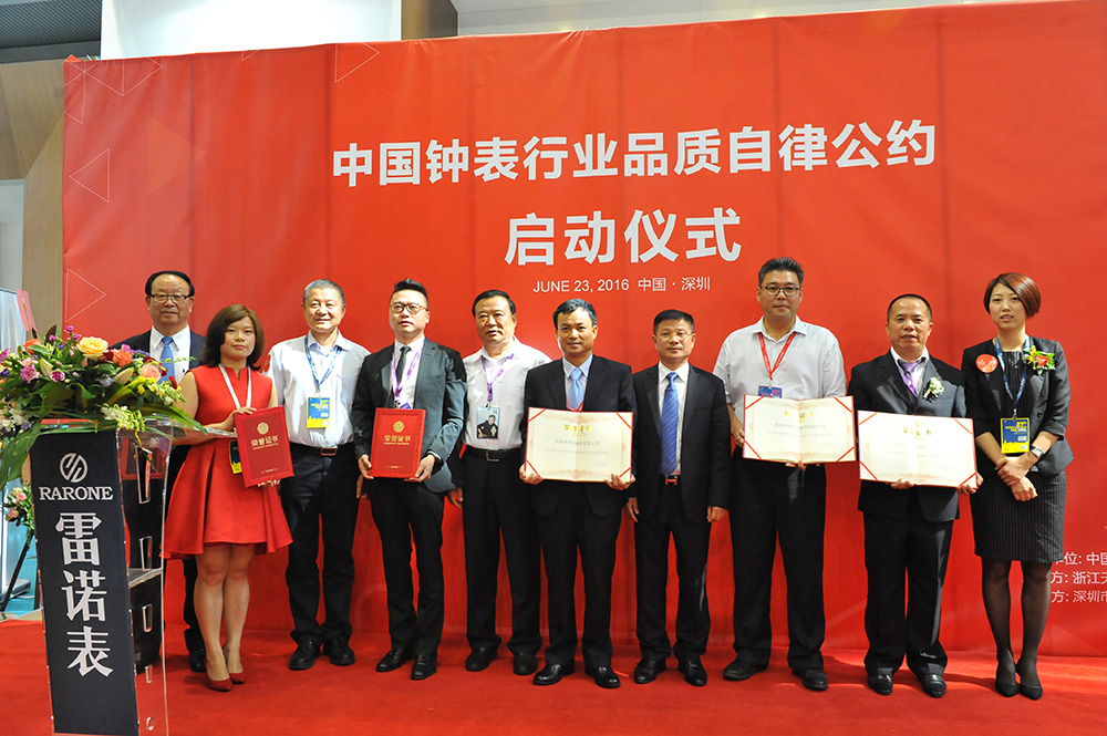 由天貓主辦、雷諾表承辦的《中國鐘表行業(yè)品質(zhì)自律公約》啟動簽約儀式在雷諾表展館內(nèi)舉行,行業(yè)內(nèi)具有影響力的鐘表企業(yè)一同簽約,為促進中國鐘表行業(yè)質(zhì)量做出努力和承諾。