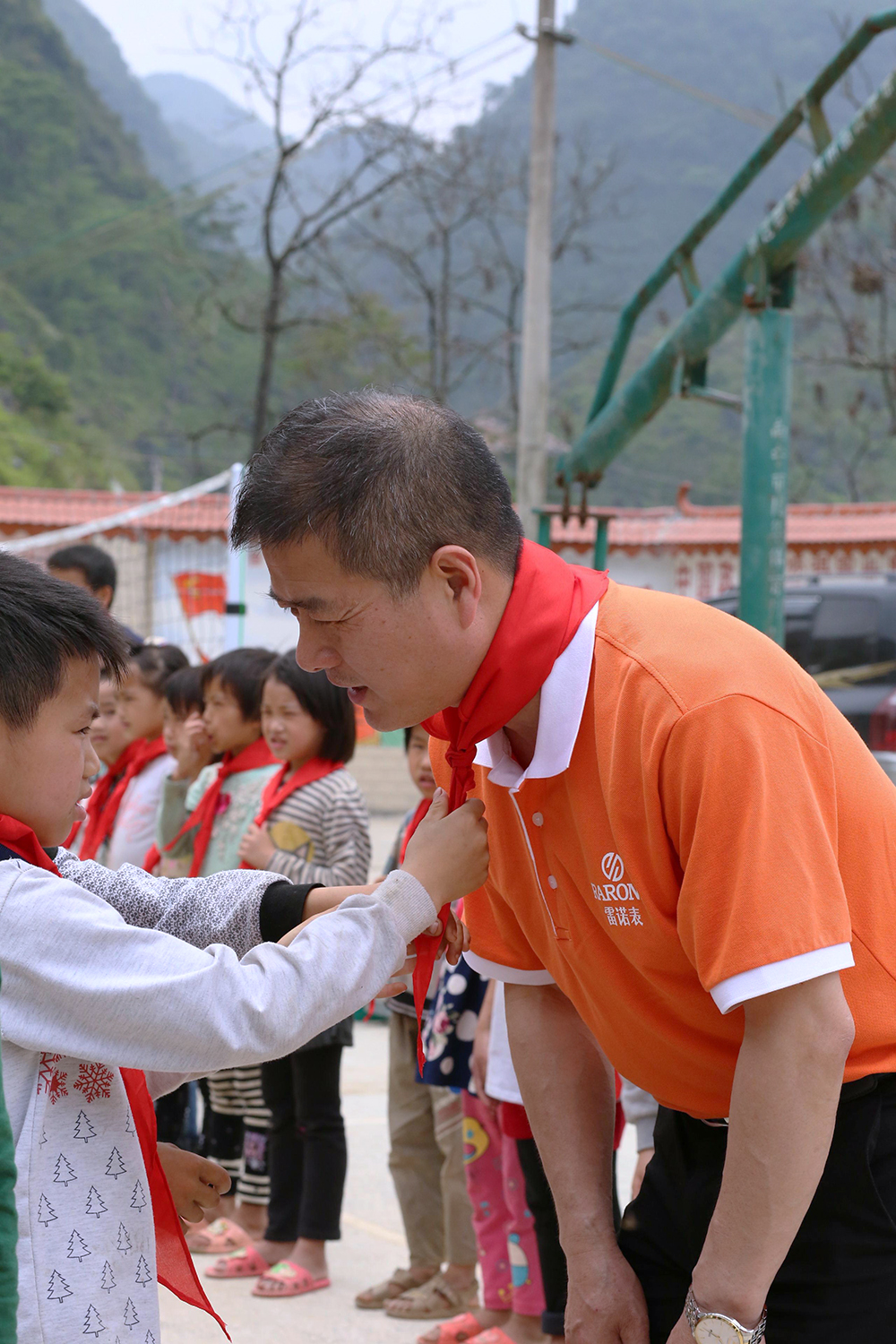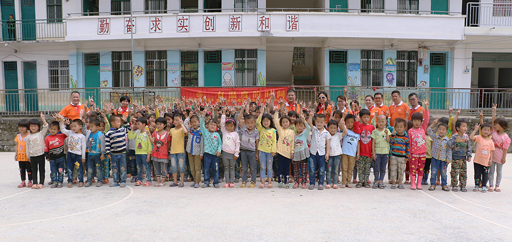 雷諾表愛心小組在總經(jīng)理詹江洲先生的帶領(lǐng)下,從南寧市區(qū)出發(fā),一路上綠水青山風(fēng)景秀美,但在快要到達(dá)同社村的山路上,我們真正見識(shí)了九曲十八彎的大山路。經(jīng)過3個(gè)多小時(shí)的長途跋涉,我們的愛心車輛終于抵達(dá)同社村小學(xué),遠(yuǎn)遠(yuǎn)就看到學(xué)校的孩子在校門口等待我們,當(dāng)孩子們親手為我們系上鮮艷的紅領(lǐng)巾,雷諾表愛心小組的每個(gè)成員的使命感愈加強(qiáng)烈。