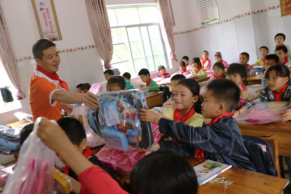 在同社村小學(xué)校長的帶領(lǐng)下,我們的愛心小組參觀了孩子們的教室和宿舍,校長說這里很多孩子每天要走路最少一、兩個(gè)小時(shí)來上課,條件很艱苦,但孩子們學(xué)習(xí)的積極性很高,也非常懂事。看著孩子們的住宿環(huán)境,我們心里有說不出的滋味。當(dāng)我們拿出為孩子們準(zhǔn)備的新書包時(shí),孩子們的眼里有光,詹總親自給每一位孩子送上新書包,孩子們露出了純真的笑臉。